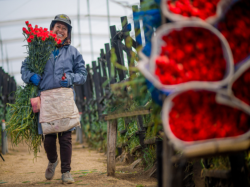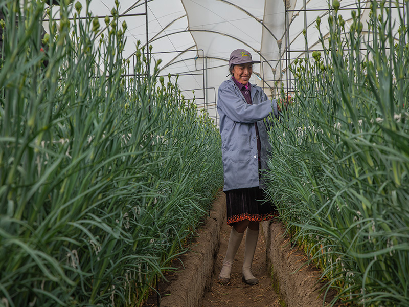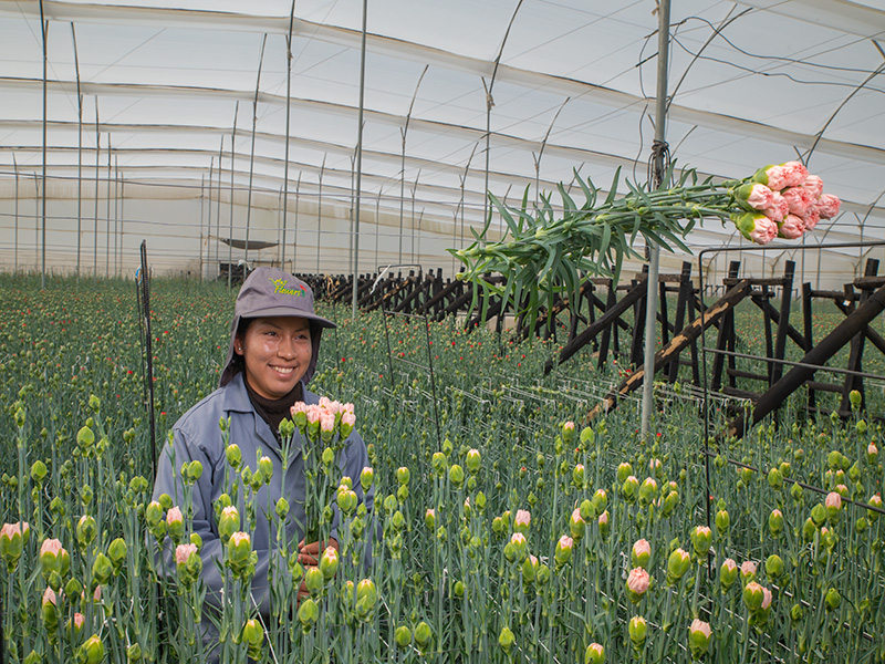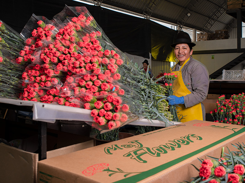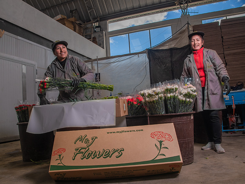 M&J's collaborators are mostly women heads of household of indigenous origin who produce flowers for the USA, Russia, Australia, Japan, Qatar, Vietnam, Spain and other countries, adapting to the packaging requirements of each destination (10, 20, 25 stems per bundle in boxes from 200 to 500 stems).